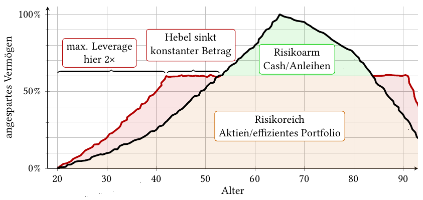 Ich habe das noch nirgendwo so anschaulich gesehen. Im Prinzip könnte man das wohl als Glidepath-Allokation bezeichnen (auch ohne Leverage). Mir gefällts das Bild zumindest :D