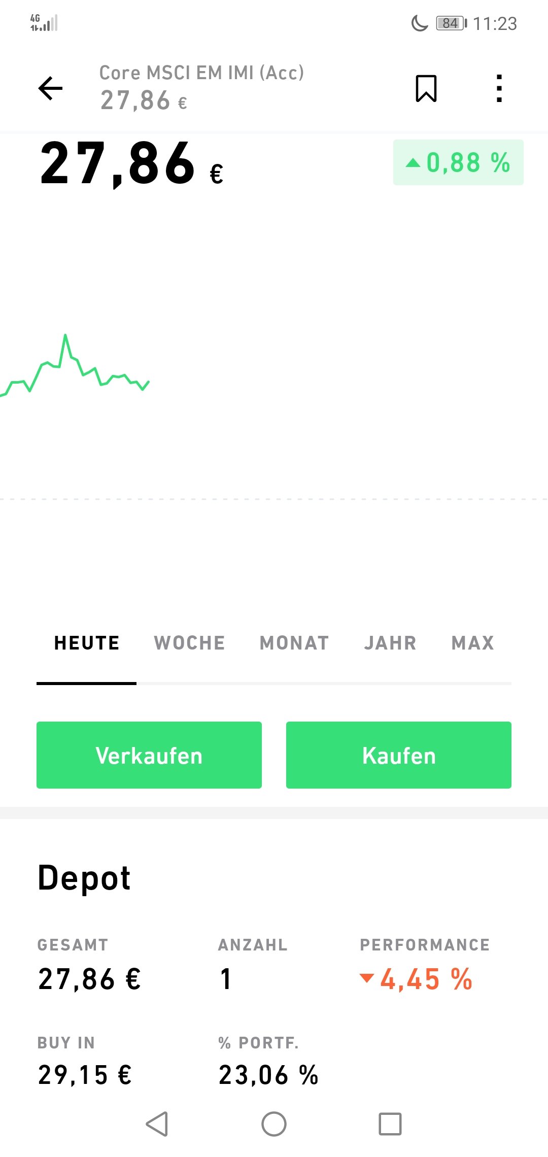 Cai Shen November 17, 2020 vor 46 Minuten von matze0611: dieses ETF habe ich heute morgen gekauft, der "Wert" stand auf 27,89€. Oben steht, heute hat es ein Hoch von 0,88%, wieso ist der Wert nur noch 27,86€? Unabhängig von der Börse vergleichst du gerade deinen Kaufkurs (Brief) von heute morgen mit dem aktuellen Verkaufspreis (Geld) und nimmst den Zuwachs seit gestern als Referenz für die Performanceberechnung. Was - außer Verwirrung - soll dabei herauskommen? Diesen Beitrag teilen Link zum Beitrag