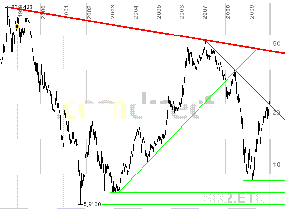 mmk23 Juni 3, 2009 Tja, jetzt stehen die Titel knapp bei 16 - bist Du bist 8 rein oder hast Du gezögert? :-) Kann den jemand von den begnadeten Charttechnikern mal was zu der Entwicklung sagen? Ist hier aktuell was zu erkennen? Für mich nämlich nicht - wie immer ;-) Autovermieter wie Sixt sind ja (vermute ich) besonders konjunkturabhängig. Schlägt also eine Aktie eines Autovermieters bei einer konkunktuellen Veränderung besonders stark aus? Immerhin hat die Aktie hier von 8 auf 15 knapp 100% zugelegt, obwohl die Zahlen eher mau waren. Ist da bereits eine mögliche Erholung der Konjunktur eingepreist? Diesen Beitrag teilen Link zum Beitrag
