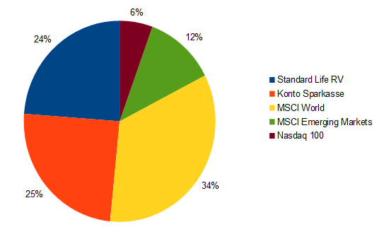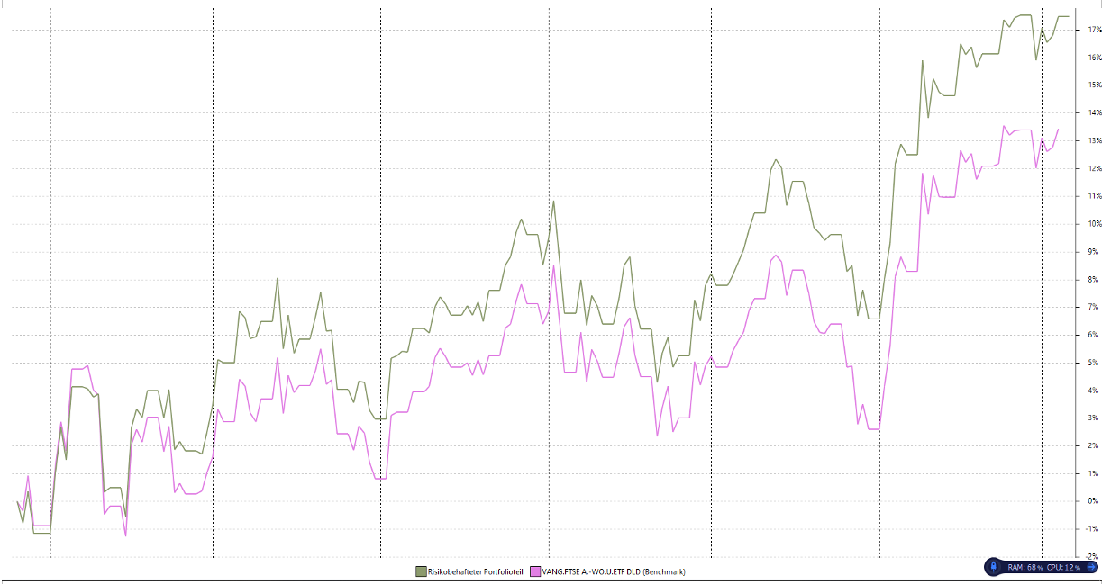 Synthomesc_alt Dezember 6, 2020 · bearbeitet Dezember 6, 2020 von Synthomesc Theoretische Asset Allocation: Ursprünglich war „nur“ ein Portfolio geplant aus den ETF ( DM / EM ) in der klassischen 70 / 30 Aufteilung. Die Assetklassen hätten somit wie folgt ausgesehen: 30 % Aktien 35 % Standard Life Rentenversicherung 35 % Girokonto + eigene selbstgenutzte Immobilie Praktische Asset Allocation: Durch das weitere Einlesen in die Materie fand ich immer mehr Gefallen an der Core-Satellite Strategie. Ich finde es interessant die beiden sehr unterschiedlichen Herangehensweisen, dass passive und das aktive Handeln, zu einer gemeinsamen Strategie zu vereinen und somit eine Outperformance zu ermöglichen. Auch meine Risikotragfähigkeit wurde überdacht und angepasst. Die Assetklassen sehen nun wie folgt aus: 49 % Aktien 24 % Standard Life Rentenversicherung 27 % Girokonto Und das Portfolio alleine betrachtet: Ziel ist es den Kern ( World / EM ) auf 80 % zu senken im Verhältnis 60 / 20 und noch den einen oder anderen Wert als spekulatives Investment in den Satellite Bereich. Wenn man diese Strategie verfolgt, versucht man die übliche Marktrendite zu schlagen. Als Benchmark habe ich mit deshalb den Vanguard FTSE All-World gesetzt. Bisher konnte ich diesen um 4 % übertreffen.... Und warum das Ganze? Ziel ist eine reine Buy & Hold Strategie für mindestens 15 Jahre, um ggf. früher den Ruhestand genießen zu können. Diesen Beitrag teilen Link zum Beitrag
