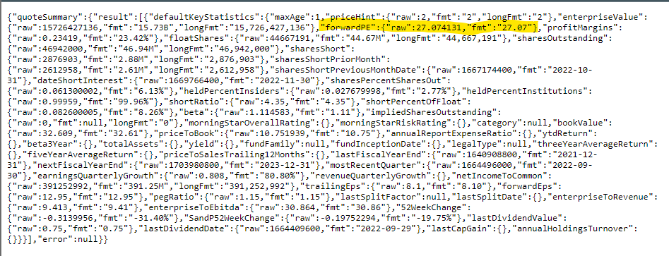 Weißt Du zufällig, warum die Werte aus WEBDIENST nicht zu den auf der Weboberfläche angezeigten passen? Als Beispiel hier das Forward P/E: