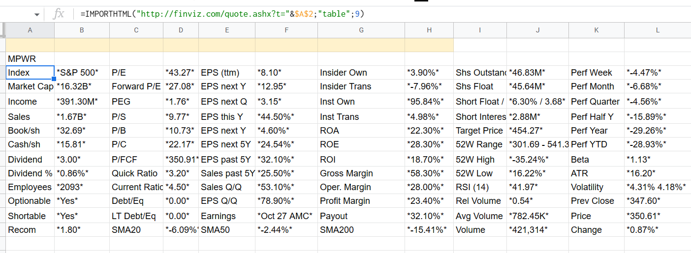 den Unterschied kann ich mir auch nicht erklären. Da muss man wohl mit einer gewissen Streuung rechnen. Ich habe mal zum Vergleich die daten von Finviz herangezogen und in ein Google-Sheet geladen: