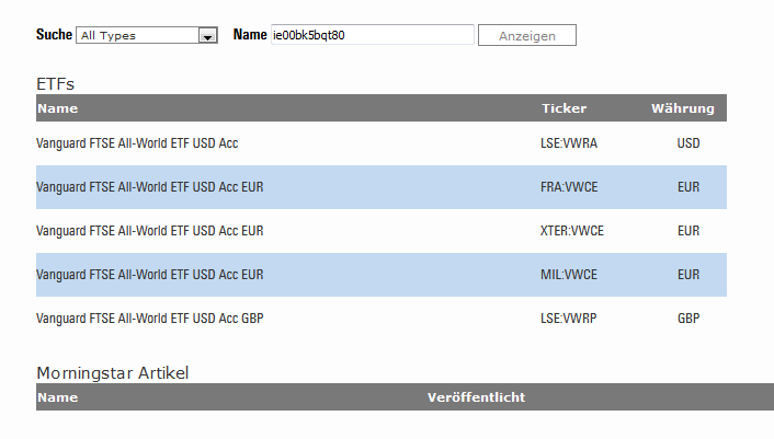 Birk Januar 14, 2021 · bearbeitet Januar 14, 2021 von Birk Was den Morningstar XRay angeht, da muss man aufpassen, denn unter einer ISIN kann man oft mehrere Einträge auswählen. Dahinter verbergen sind dann die Notierungen an den Referenzbörsen verschiedener Länder (London, XETRA, usw). in den entsprechenden Währungen (USD, GBP, EUR, usw). Für einen Vergleich sollte man aufpassen, nur Einträge mit gleicher Währung auszuwählen, sonst passt der Vergleich nicht mehr. Diesen Beitrag teilen Link zum Beitrag