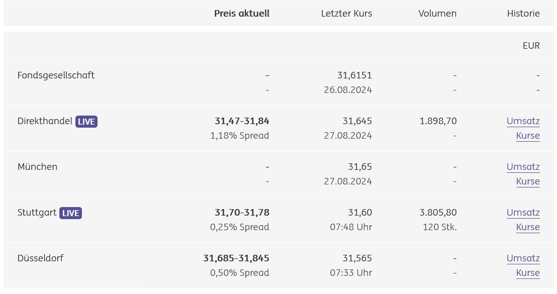 Tenno August 28, 2024 Mal ne andere Frage. Hat jemand einen Sparplan auf einen der LifeStrategy Fonds bei der ING laufen. Die werden ja nicht bei Xetra gehandelt. Wie sehen denn da die Abrechnung hinsichtlich Ausführungszeiten, Börse, Spreads so aus? Diesen Beitrag teilen Link zum Beitrag