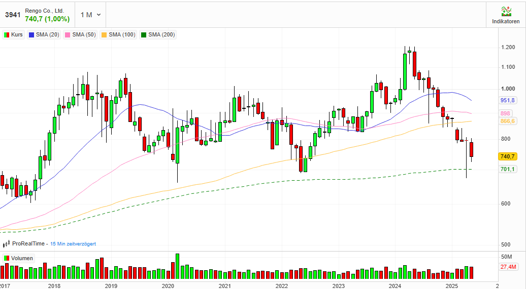Lever-H 27. Mai Hatte die letzten Tage einen spannenden Austausch mit einem Nutzer des Forums, wo es u.a. über Bewertungsmodelle von Aktien ging. Sein persönlicher Ansatz brachte Unternehmen zu Tage, die überwiegend nicht meinem Beuteschema entsprechen. Eines davon weckte dann doch meine Aufmerksamkeit: Rengo Co.; ist ein Hersteller von u.a. Papierschachteln aus Japan. KGV von 6, Dividendenrendite iHv 4 % mit Ausbaupotential. Das Wachstum ist überschaubar und dürfte es auch bleiben, das Geschäftsmodell ist jedoch stabil und Margen können in der nächsten Zeit höher werden durch Preisanstieg der Produkte. Umsätze (in japanischen Yen): Rengo Co. bietet aktuell mEn eine attraktive Einstiegsgelegenheit – aus folgenden Gründen: Robuste Marktposition in wachstumsstarken Segmenten Wellpappen-Verpackungen: Mit rund 40 % Marktanteil ist Rengo führend in Japan und profitiert von der weiter zunehmenden E-Commerce-Verlagerung zum Online-Handel. Industrielle Spezialverpackungen: Für Elektro-, Automobil- und Pharmakunden steigen die Anforderungen an Sicherheit, Traceability und Nachhaltigkeit – Rengo liefert dafür maßgeschneiderte Lösungen. Verbesserte Margen dank Kostendisziplin und Integration Rohstoffkosten sinken: Nach dem Höhepunkt der Papierfaserknappheit 2023 haben sich Zellstoff- und Altpapierpreise um 10-15 % abgeschwächt. Rengo konnte die höheren Einkaufspreise nur mit Verzögerung voll an Endkunden weitergeben, hebt nun aber sukzessive wieder Preise und erholt so seine EBITDA-Marge. Betriebliche Synergien: Die Übernahmen von Nissha-Board (2022) und einem chinesischen Wellpappenhersteller (2024) erzeugen Skaleneffekte bei Einkauf, Logistik und Verwaltung. Solide Bilanz und hoher Free Cash Flow Verschuldungsgrad (Net Debt/EBITDA) liegt mit rund 1,8× auf einem moderaten Niveau, obwohl Rengo zuletzt größere Investitionen tätigte. Free Cash Flow Yield von knapp 5 % (auf Basis des aktuellen Kurses) signalisiert, dass das Unternehmen nach CapEx noch starke Mittel für Rückkäufe und Dividenden ausweist. ESG- und Nachhaltigkeits-Tailwinds Rengo investiert in recyclingfähige Klebstoffe und CO₂-reduzierte Produktionsverfahren, was sie zu einem bevorzugten Partner großer Konsumgüterhersteller macht, die ihre Verpackungsketten „grüner“ gestalten wollen. Auch charttechnisch eine guter Einstiegszeitpunkt: Vorstand und Aufsichtsrat sind - selbst für japanische Verhältnisse - ziemlich alt. Der CEO ist sogar bereits 86. Aber nunja, auch Warren Buffett sitzt noch auf seinem Chefsessel und sein Unternehmen ging nicht pleite Kauf Rengo Co, 10.000 Stück zu 737.8 JPY an der Tokyo Stock Exchange. Diesen Beitrag teilen Link zum Beitrag