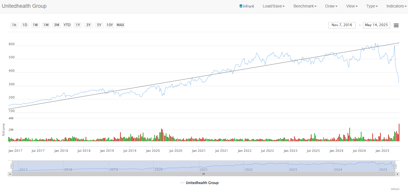 Lever-H 13. Mai Am 7.5.2025 um 17:54 von lowcut: Man muss auch mal den Gewinn realisieren. Genau, so ist mein Weg. Ich trauere dem verpassten weiteren Kursanstieg nicht hinterher. Heute stand sie bei 63$. Habe stattdessen mal einen Blick auf ein Unternehmen geworfen, welches zwar auf meiner Watchlist steht, ich aber nie ernsthaft ein Invest in Erwägung gezogen habe. Es handelt sich um UnitedHealth, den größten Krankenversicherer aus den USA, die derzeit massiven Gegenwind haben. Ich halte die Marktreaktion für übertrieben. Timing ist wahnsinnig schwierig, meine Glaskugel weist mir aber den Weg Erstkauf: BOUGHT 200 UNH @ 309.47 $ Werde in den nächsten Tagen meinen Kauf näher erläutern. Diesen Beitrag teilen Link zum Beitrag