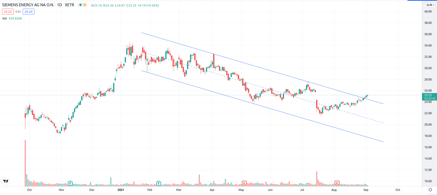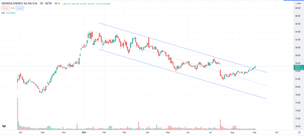 boersenschwein Dezember 22, 2020 · bearbeitet Dezember 22, 2020 von boersenschwein Tochter von Siemens nach Abkopplung. ISIN: DE000ENER6Y0 Über Siemens Energy AG: Die Siemens Energy AG ist ein weltweit tätiger Industriekonzern auf dem Energiesektor. Die Gesellschaft spaltete sich im September 2020 als eigenständiges Unternehmen von der Siemens AG ab. Siemens Energy ist nahezu entlang der gesamten Energie-Wertschöpfungskette tätig. Das Unternehmen bietet Lösungen zur Energieübertragung und Stromerzeugung an. Zu den wichtigsten Produkten zählen vor allem Gas- und Dampfturbinen, Generatoren, Transformatoren, Kompressoren und weitere Kraftwerkstechnologien für unterschiedliche Energiequellen. Unter anderem werden eine Vielzahl von Industrieanwendungen für die Öl- und Gasindustrie angeboten. Außerdem entwickelt die Siemens Energy AG Technologien im Bereich neuer Energien, wie beispielsweise moderne Wasserstofftechnologien. Über die Mehrheitsbeteiligung an Siemens Gamesa Renewable Energy ist das Unternehmen mit Windenergietechnologien und -dienstleistungen im Bereich erneuerbarer Energien tätig und zählt hierbei zu den weltweiten Marktführern. seit 21.12.2020 im MDAX Diesen Beitrag teilen Link zum Beitrag