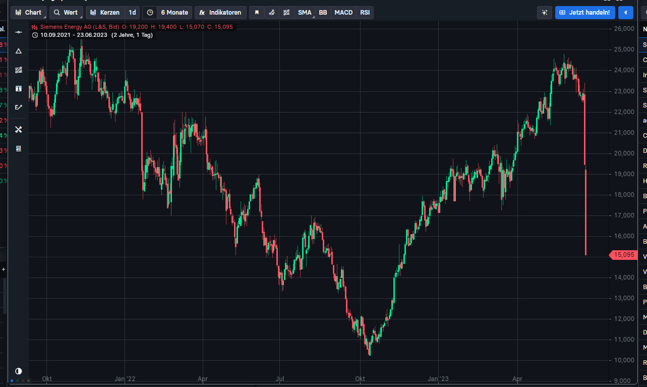Wuppi Oktober 26, 2023 · bearbeitet Oktober 26, 2023 von Wuppi … da brennt richtig die Hütte Garantien vom Bund, Kapitalerhöhung, dazu unklare Aussichten über die Höhe möglicher Schadensersatzansprüche, Inflation/Zinsen die das Neugeschäft belasten … bin froh hier relativ kurzfristig nach der Zuteilung ausgestiegen zu sein, auch wenn der Bereich indem Siemens Energy tätig ist super spannend ist. Allerdings wird es hier definitiv länger dauern das Unternehmen wieder auf Kurs zu bringen. Bitter auch für Siemens die vermutlich größte Abschreibungen tätigen müssen, auch hier der Kurs heute bei knapp -6%. Diesen Beitrag teilen Link zum Beitrag