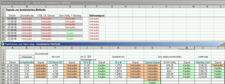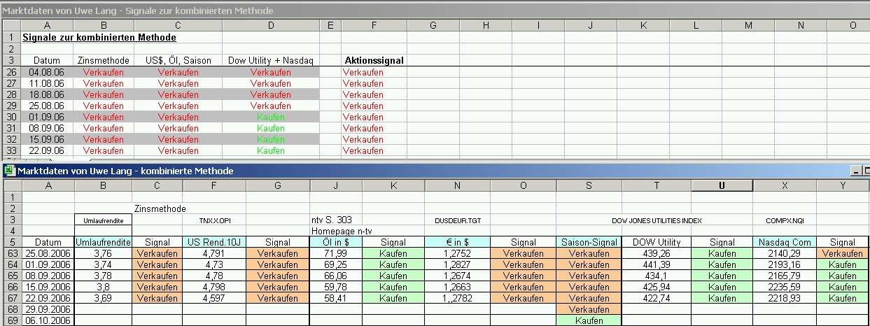 Onassis Oktober 5, 2006 hi onassis, uwe lang ist seit anfang dieser woche wieder long. für ihn hat das saison-signal schon letzte woche auf kaufen geschaltet. http://www.boersensignale.de/boersenprognoseaktuell.html viele grüße aus ka Tatsächlich! Ich werte die Signale am Freitag aus - und am Freitag war noch September. Also hat sich am Freitag das Signal nicht geändert. Uwe Lang sagt aber, das am Montag, dem Kauftag schon Oktober war und hat somit auf KAUFEN geschaltet. Na ja, auf 1 Woche kommt es nicht drauf an. Nächsten Montag bin ich dann auch long und werde volle bulle einsteigen! Onassis Diesen Beitrag teilen Link zum Beitrag
