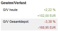 Onassis Oktober 26, 2007 Zuerst mal die Übersicht beim laufenden trade: Insgesamt sind wir noch im Minus, aber es sah schon schlimmer aus. Aber was solls, hier gehts nicht um ein oder zwei Wochen! Also locker durch die Hose atmen Onassis Diesen Beitrag teilen Link zum Beitrag
