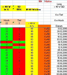 funky1 November 6, 2010 · bearbeitet November 6, 2010 von funky1 Hallo! Aktualisierung der 6-Wochen-Indizes: Letzte Woche war ich leider verhindert. Von 48 weltweiten Indizes: 37 neue Hochs zu zwei Tiefs. Das entspricht 77 % von den 48 weltweiten Indizes. Die Jahresendrally ist voll am laufen. Ich warte gespannt auf ediric`s Tabelle! Schönes Wochenende wünscht der funky Diesen Beitrag teilen Link zum Beitrag