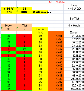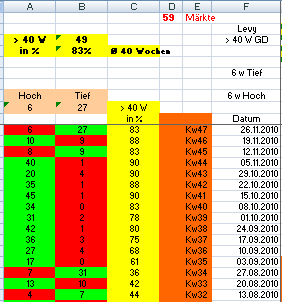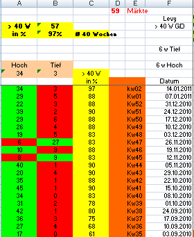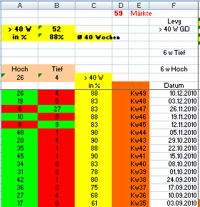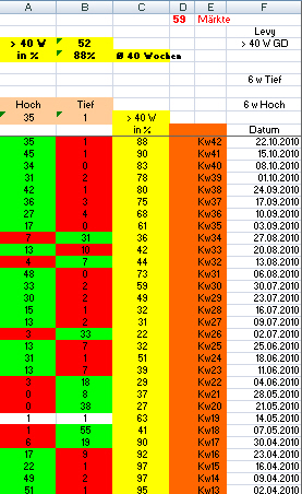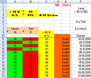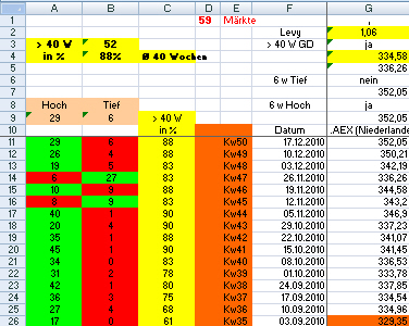 ediric November 7, 2010 Hallo zusammen, hier wieder die aktuellen Daten. In der Grafik werden die Hochs (grün) den Tiefs (rot) gegenübergestellt. Wohlstandsfördernde Grüße ediric Diesen Beitrag teilen Link zum Beitrag