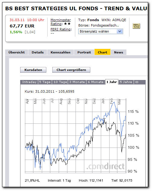 Rock a Billy April 6, 2011 warum macht er nicht einfach sein system mit etfs? das ist so ein punkt, den ich mich schon lange frage... Weil Uwe Lang der Meinung ist, dass durch die Kombination von relativer Stärke und KUV einzelner Aktien, der representative Index eines Landes zu schlagen ist. Eine der Hauptursachen für die schlechte Performance des Fonds ist, dass Haidorfer erst in der Spätphase der Baisse Absicherungspositionen auf den DAX in 2009 aufgebaut hatte. Der Bounce und die neue Aufwärtsbewegung ab März 2009 kostete Geld! Die vollständige Auflösung der Futures, geschah nämlich erst im Mai 2009. Diesen Beitrag teilen Link zum Beitrag