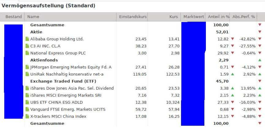 Aber ich werde dich nicht restlos überzeugen können, dass ich ehrlich bin- wie auch? Die Frage ist: muss ich das? Eigentlich soll jede einzelne Position renditetechnisch Sinn machen und man kann sie einzeln bewerten. Und die Gesamtperformance ist auf jeden Fall schlechter, weil Sparpläne laufen, die aber kein so großes Volumen haben.