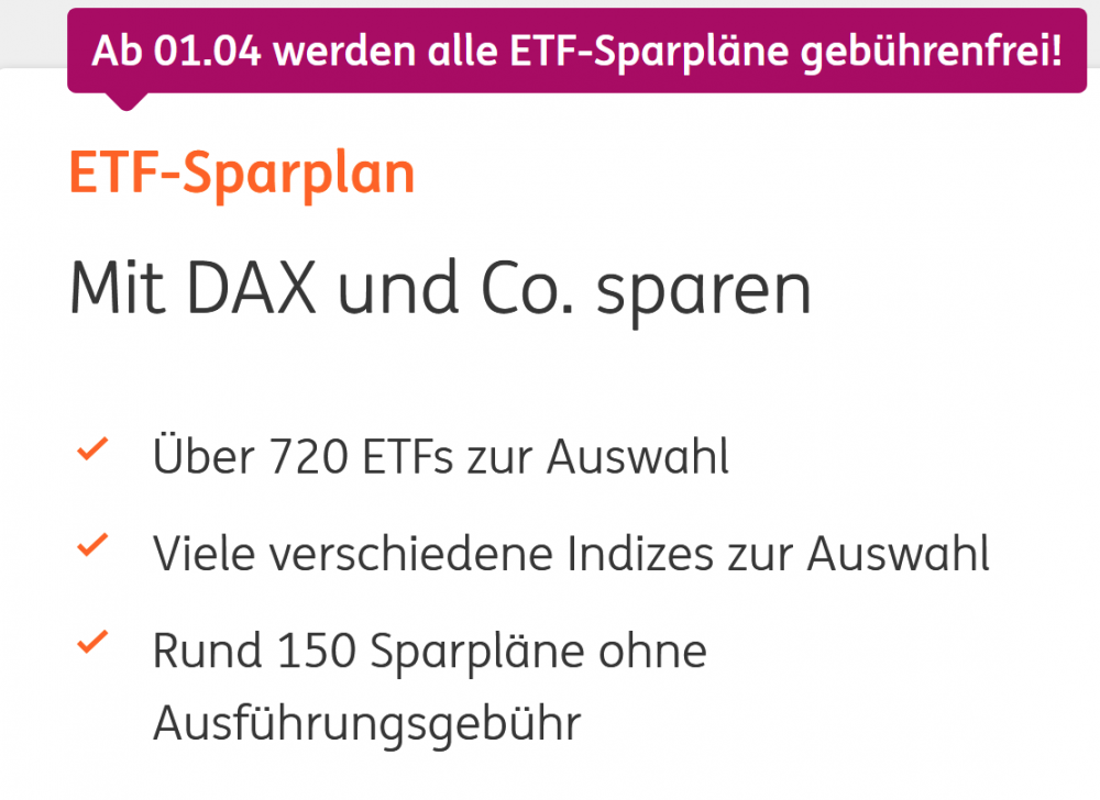 aktuell würde ich jetzt auf den 01.04. warten und schauen, was die ING mit ihrem kostenlosen dauerhaften ETF Sparplan Angebot tatsächlich genau anbietet.
