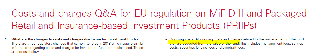Jetzt könnte man natürlich spitzfinderisch sein und sich fragen, weshalb dann Kosten für Zielfonds, die bereits beim Zielfonds belastet werden, nach dieser Definition in den Ongoing Costs enthalten sein sollen.