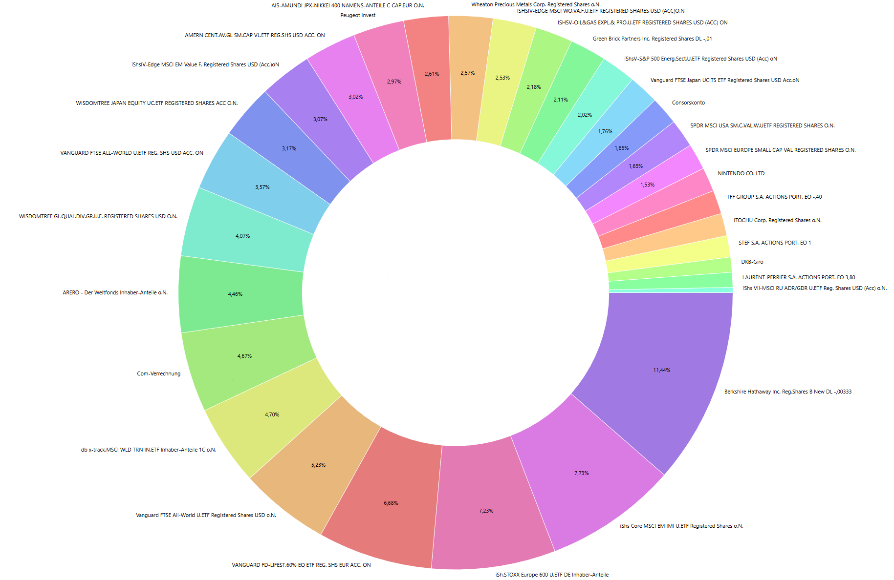 HHanseat vor 12 Stunden vor 8 Stunden von Fetz: Hmmmm, so viele Foristen - und nur 15 posten die 3-Jahres-Ergebnisse hier? Nur Mut, alle lernen hier von allen, und das gilt auch für inzwischen staubtrockene Investoren wie mich. Na gut, dann hier ein Beispiel eines historisch gewachsenes Portfolios: Aktien-Depot etwa 2/3 vernünftig als ETF-Weltportfolio mit BIP-und Value-Tilt, etwa 1/3 gegen den US-Tech-Klumpen (und für den Spieltrieb ) in Einzelaktien und Sektor-ETFs. Der "vernünftige" Anteil ist bisher besser gelaufen und macht weniger Aufwand. Ich habe aber trotzdem wieder ein paar fallende Messer eingesammelt (z.B. französische SmallCaps). Ziel ist langfristiger Vermögenserhalt bei etwas reduziertem Risko ggü. dem Markt und hoffentlich besserer Rendite als Geldmarkt. Ich bin jetzt seit einem Jahr Privatier und versuche etwas Risiko aus dem Portfolio zu nehmen. Bisher hatte ich kaum Anleihen o.ä., das war mir bisher mit Vorsteuerrenditen um die Inflationsrate nicht attraktiv genug. Andererseits finde ich die hohe Bewertung der Aktienmärkte inzwischen auch unheimlich und habe erste Positionen in Arero und Vanguard Life Strategy 60% umgeschichtet, so ganz zufrieden bin ich da aber noch nicht. Diesen Beitrag teilen Link zum Beitrag