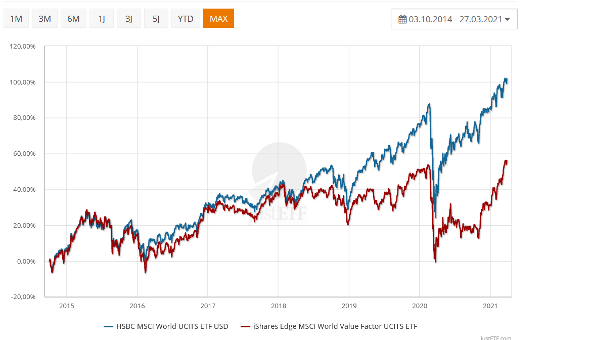 Jetzt würdest du teuer einkaufen , weil Value seit 6 Monaten sehr gut läuft!