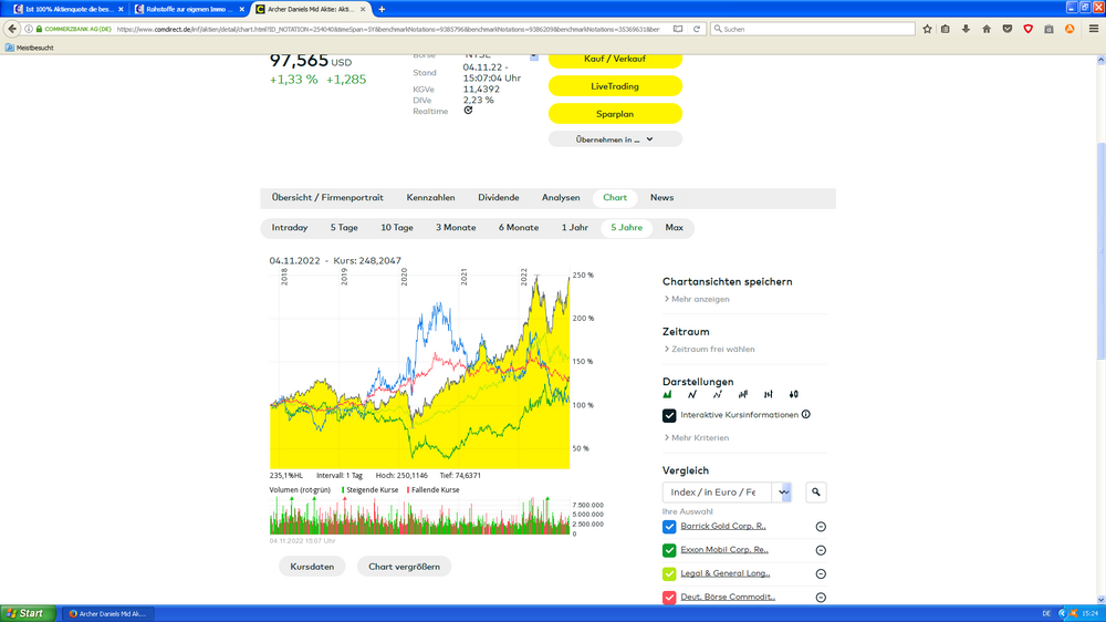 Habe mal einen Chartvergleich über 5 Jahre gemacht ('gelb' ist Archer-Daniels-Midland'):