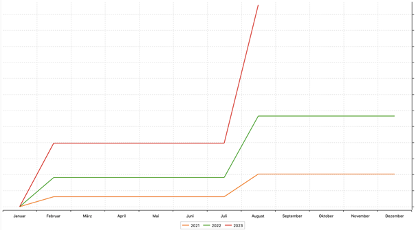 brln_sri September 4, 2023 Update #24 | Stand: 31. August 2023 Die Aktienquote nähert sich weiter der Zielmarke von 60%, genauer gesagt lag sie Ende Juli bei 59,1% und Ende August aufgrund der Monatsverluste bei 58,9%. Die jeweiligen Anteile der drei ETFs sind ebenfalls alle im Zielkorridor: Ende August bestand das Aktien-ETF-Depot aus 61,5% MSCI World SRI, 15,7% MSCI World SC SRI und 22,7% MSCI EM SRI. Die Performance im Juli war gut. Es ging für alle ETFs nach oben, insgesamt 3,4%. Den größten Monatsgewinn gab es beim MSCI EM SRI mit 5,7%. Das Gesamtportfolio machte den dritten Monat in Folge einen Satz nach oben, diesmal 2,1%. Und um 0,8% ging es dann im August wieder runter, denn der Aufwärtstrend hat sich leider nicht fortgesetzt. Die Aktien-ETFs verloren 1,7%, der MSCI EM SRI mit 4,8% am stärksten. Ausschüttungen Mitte August war die zweite Ausschüttungsrunde meiner ETFs in diesem Jahr. Ausgeschüttet wurden beim MSCI World SRI ETF 0,9221 EUR pro Anteil und beim MSCI EM SRI ETF 0,1616 EUR pro Anteil. Die Ausschüttungsrendite liegt damit laut Portfolio Performance bei 1,28% bzw. 1,78%. Der durch die Ausschüttungen erhaltene Betrag war im August mehr als doppelt so hoch wie im Februar, und 2023 insgesamt mehr als doppelt so hoch wie 2022. Da sich das Verhältnis der ETFs in meinem Depot in den vergangenen Monaten zulasten der Emerging Markets entwickelt hat, habe ich mich entschieden, die Ausschüttungen für ein Rebalancing zu nutzen und den gesamten ausgeschütteten Betrag mit der Sparplanausführung Anfang September in den MSCI EM SRI ETF zu investieren. Das nächste Update folgt Ende Oktober. Bis dahin werde ich mir auch Gedanken über die aktuell in deutschen Staatsanleihen geparkten und im Oktober und Dezember freiwerdenden Beträge im risikoarmen Portfolioteil machen. Ein vorzeitiger Verkauf war bei 3,5% aufs Tagesgeld nicht rentabel. Diesen Beitrag teilen Link zum Beitrag