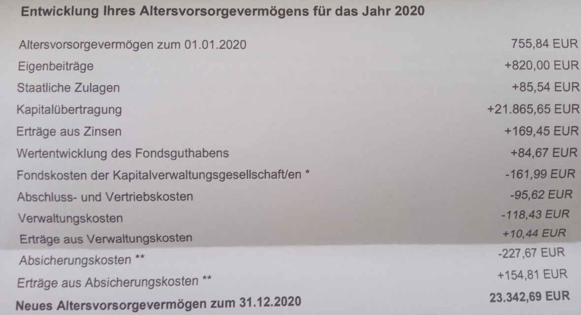 Kosten / Ertrag WWK Riester Premium Förder Rente