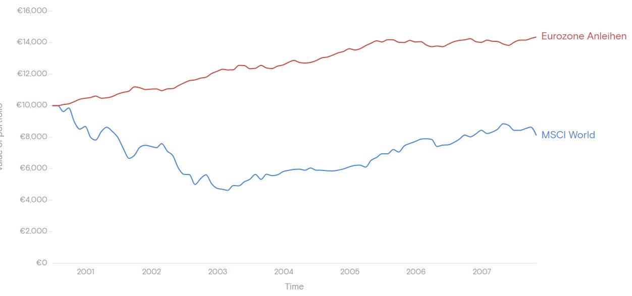 Zur Klarstellung nochmal: Ich halte überhaupt nichts davon, einen möglichen Anleihen-Teil durch Aktien zu ersetzen in der aktuellen Zeit. Aktien werden immer riskanter sein als Anleihen, egal zu welcher Zeit. Mir ging es eher darum, aufzuzeigen, dass Anleihen im Gegensatz zu Tagesgeld aktuell vielleicht unnötig riskant sind.