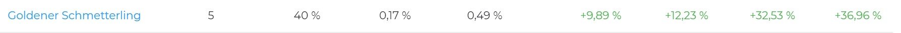Madame_Q Juli 7, 2021 · bearbeitet Juli 7, 2021 von Madame_Q monatliches Performance-Update aller Produkte: Welche Änderungen gab es / fallen auf? Alle VanEck-Fonds sind etwas nach unten gerutscht. Der Lyxor Defensive ist auch nach unten gerutscht. Gut entwickelt haben sich die beiden Siemens Fonds Diversified Growth und Absolute Return (zum Div.Gr. hatte ich ja vor Kurzem ein bisschen was geschrieben; stark ist auch, dass der extrem defensive Absolute Return sogar dem fast doppelt so riskantem Balanced auf die Pelle rückt und auch am Vanguard LS40 dran ist). Der Vanguard LS 80 hat den Arero nun doch überholt und bleibt auch weiterhin vor dem GPO, der wiederum immer noch nicht den Arero einholen konnte. Weiterhin komplett abgeschlagen ganz unten bleibt der Vanguard LS20 (wundert mich überhaupt nicht) Auffällig ist übrigens bei den Vanguards, dass man nicht einfach sagen kann: "Ein LS 40 müsste sich ungefähr so entwickeln wie 50% LS80 oder 75% LS60 bzw. ein LS60 ca. 75% so gut wie ein LS80." Diesen Beitrag teilen Link zum Beitrag