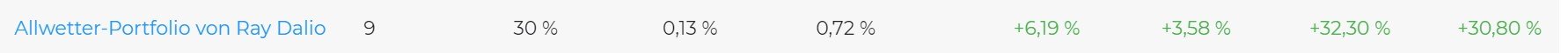 Madame_Q Juli 4, 2021 · bearbeitet Juli 4, 2021 von Madame_Q Bzgl. Harry Brown: Das Allwetter (Dalio) und das Golden Butterfly sind ja ähnlich gestrickt. Hier mal die Performance im Vergleich zu einem 30% Aktien + 70% Global Agg. Bond EUR - Depot: Quelle: https://de.extraetf.com/etf-portfolio vor 31 Minuten von pillendreher: Als jemand mit einer hohen Cashquote, ein Grund für mich, in nächster Zeit in mich zu gehen und vielleicht dieses zu ändern. Dem schließe ich mich an und zwar jeden Tag. Vielleicht können wir meinen Mann auch noch dazu bewegen. Es muss nicht bei 20k Euro Cash + Rest woanders rein enden, aber dass wir zu viel Bankeinlagen haben, ist nichts Neues. Problem für viele wird aber nach wie vor sein (und das Dumme ist, dass einige es eben nicht wissen, sondern erst merken, wenn es soweit ist): Ist der riskante Depotteil ohne Cash nicht gut verteilt und es kracht, dann kommt Panik. Ich glaube immer noch, dass das mit einem Eigenbau gar nicht so einfach ist, dass man das psychologisch gut erträglich hinbekommt als Nicht-Experte. Ich hatte es ja schon öfter geschrieben - einen Arero im Eigenbau würde ich wohl nicht durchhalten, außer ich sehe ewig nicht ins Depot und das gelingt mir nicht. Anbei Respekt, dass du vor einiger Zeit tatsächlich den US-Langläufer-ETF gekauft hast. Das erfordert auch Nerven wie Drahtseile. Ich war da auch mal ganz kurz davor, einen Mini-Teil "zur Diversifikation" zu ordern, habe aber dann doch Sch.... bekommen. vor 31 Minuten von pillendreher: in einem rational aufgestellten Depot Das liebe Wörtchen....tja. Vieles im Leben wäre rational anders zu machen. Man schafft es aber nicht. Da fällt mir ein, dass ich rational gesehen wieder öfter joggen müsste und nicht so viel Pizza essen sollte seit Corona wütet. Egal - das Leben soll wohl nicht nur rational in Ordnung sein, sondern muss auch mal gut schmecken. Diesen Beitrag teilen Link zum Beitrag