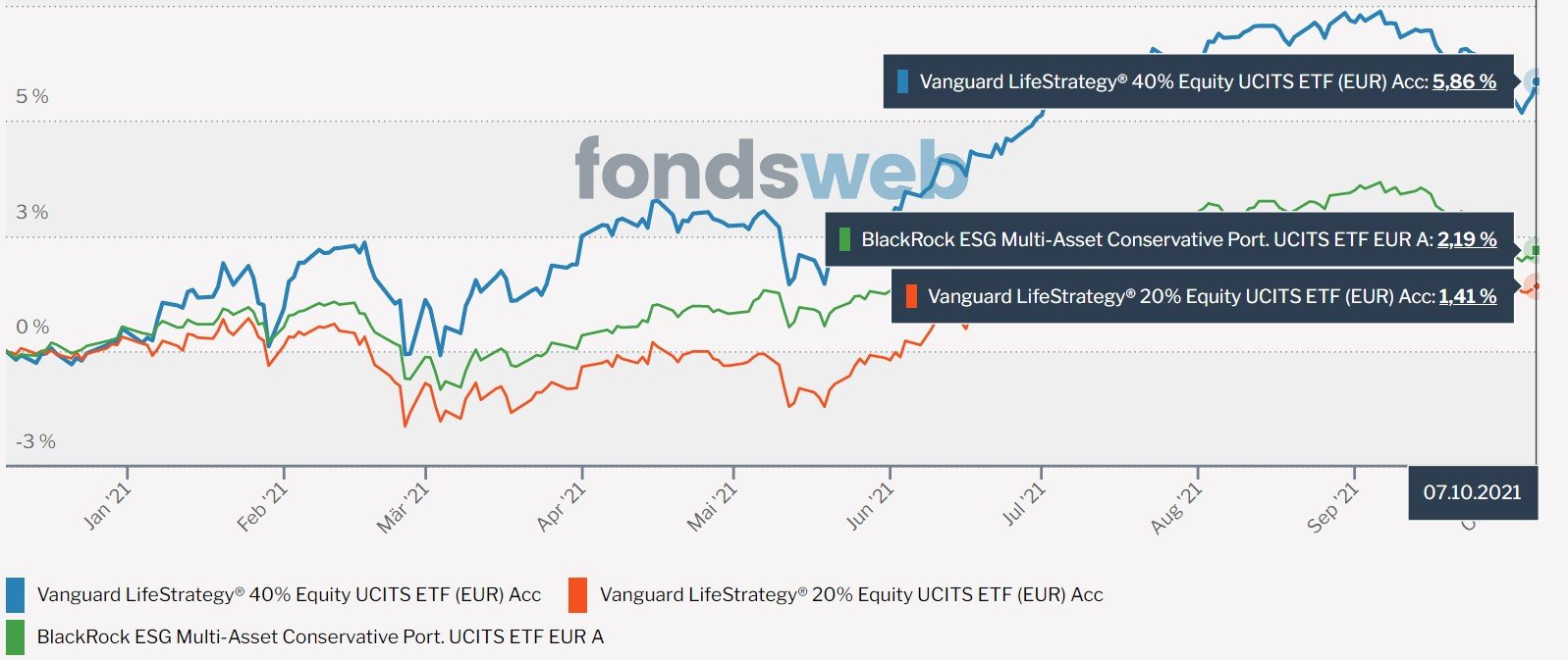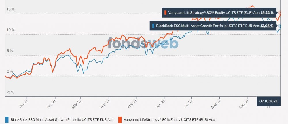 Madame_Q Oktober 11, 2021 · bearbeitet Oktober 11, 2021 von Madame_Q Ich habe mir heute mal die von @Fondsanleger1966 angesprochenen aktiven BlackRock ESG-Multi-Asset-Fonds angesehen. Ähnlich wie bei der Konkurrenz gibt es dort auch drei Risiko-Produkte mit unterschiedlich hohen Aktien- und Anleihenteilen. Alle drei Produkte nutzen hausinterne Ishares-ETFs ähnlich wie die Vanguard-LS es auch tun und alle drei sind Thesaurierer. https://www.ishares.com/de/privatanleger/de/produkte/313190/blackrock-esg-multi-asset-growth-portfolio-ucits-etf https://www.ishares.com/de/privatanleger/de/produkte/313193/ https://www.ishares.com/de/privatanleger/de/produkte/313193/ Die Aktienanteile bewegen sich aktuell bei 83%, 56% und 24% mit starker USA-Gewichtung. Der Anleihenteil besteht ebenfalls schwerpunktmäßig aus US-Treasuries (die nicht währungsgesichert sind!), wobei auffällt, dass beim offensivsten Mischfonds der geringe Anleihenteil durch sehr langlaufende US-Treas.-ETFs sozusagen gehebelt wird und damit viel mehr Wirkung erzeugt trotz des geringen Prozentanteils. Das finde ich gar nicht mal so dumm. Auf den ESG-Filter gehe ich jetzt nicht ein - das ist eh ein Thema für sich, mit dem sich jeder Interessent genau beschäftigen muss. Ein Vergleich mit den Vanguards mit dem üblichen (kurzen) Zeitraum seit Auflage von diesen sieht dann bisher so aus: https://www.fondsweb.com/de/vergleichen/ansicht/isins/IE00BLLZQ805,IE00BMVB5R75 https://www.fondsweb.com/de/vergleichen/ansicht/isins/IE00BMVB5P51,IE00BLLZQS08 https://www.fondsweb.com/de/vergleichen/ansicht/isins/IE00BMVB5M21,IE00BMVB5K07,IE00BLP53M98 Die Gebühren sind mit 0,25% TER auffällig niedrig wie bei den Vanguards, wobei das für die effektiven/tatsächlichen Gebühren nicht viel heißen muss (wie es bei Dachfonds ja oft ist). Bei den Vanguards hatten wir da ja im entsprechenden Thread eine riesen Diskussion darüber. Die Fondsvolumina aller drei Kandidaten sind zudem immer noch recht klein (zwischen 15 und 32 Mio), was aber kein Problem sein dürfte, weil die Produkte ähnlich wie die Vanguard-LS noch nicht lange auf dem Markt sind (Auflage war vor gut einem Jahr im Sept 2020). Entsprechend ist der Spread recht saftig. Man zahlt bei Kauf um die 1%. Wer noch weitere, interessante Infos zu den BlackRock-ESGs entdeckt, die ich übersehen habe, bitte gerne posten. Diesen Beitrag teilen Link zum Beitrag