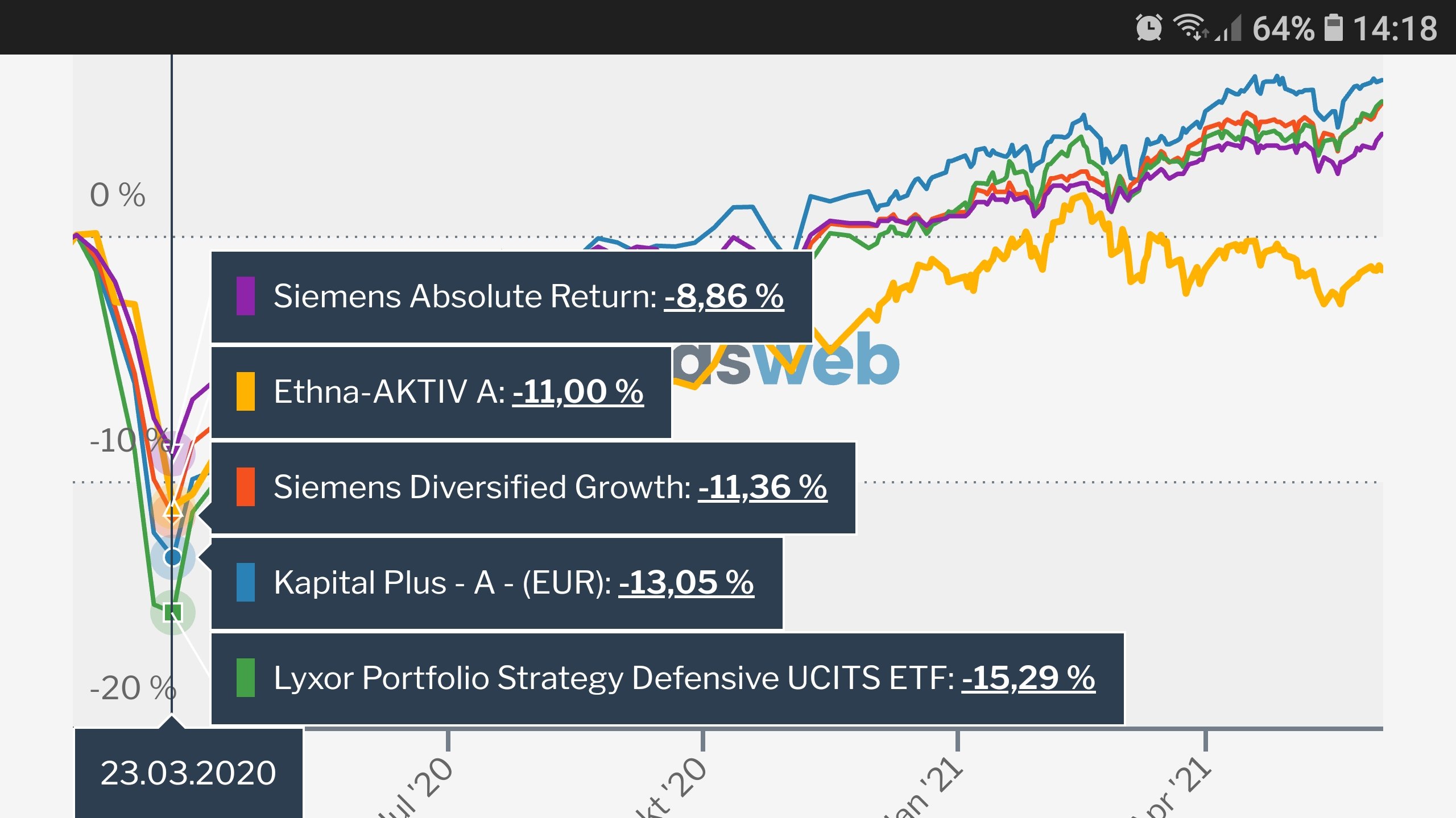 Madame_Q Dezember 3, 2021 · bearbeitet Dezember 3, 2021 von Madame_Q vor 7 Minuten von stagflation: Die würden nicht das Gesamt-Portfolio betrachten, sondern auf den World- oder All-World ETF schauen - und bei den starken Schwankungen durchdrehen und irgendwann verkaufen. Benötigt wird also ein Fertig-Produkt, in dem zwar Aktien enthalten sind, bei dem die starken Schwankungen der Aktien aber nicht sichtbar sind vor 7 Minuten von stagflation: Man bräuchte also einen LS 20 mit "zahmen" Anleihen (wie der Anleihe-Anteil beim ARERO). Ähhh....die Anleihen im Arero und um LS20 sind vom Risiko her sehr ähnlich. vor 7 Minuten von stagflation: Dieses Produkt habe ich aber bisher nicht gefunden Der Siemens Absolute Return kommt diesem Wunsch am nähesten. Value at Risk: 2,5% pro Jahr Durchschnittl. Rating der Anleihen: A Modified Duration aktuell: 5,5 Diesen Beitrag teilen Link zum Beitrag