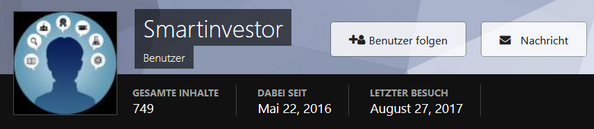 Zasterbart August 2, 2022 · bearbeitet August 3, 2022 von Zasterbart Typos, Beitrag entschlackt, Postskriptum vor 14 Stunden von monstermania: Warten wir doch einfach mal wenigstens 10 Jahre ab und entscheiden dann, ob DA der 'Stein der Weisen' gelungen ist Das Abwarten bringt genauso viel - präziser: genau so wenig - wie das Gucken auf den aktuellen Kurs. Ist doch genau dasselbe wie mit aktiven (Misch- oder Dach-)Fonds. Man muss den Ansatz verstehen und mittragen. Ich lese immer noch interessiert die Blog-Beiträge. Kostet nicht viel Zeit, auch weil es keine Kommentare mehr gibt. Der rheinische Optimismus scheint im Laufe der Jahre etwas abgeflaut zu sein. Der Wesir hat herausgefunden, dass man, um 50% Verlust auszugleichen, 100% gewinnen muss, und diese traurige Erkenntnis steht jetzt am Anfang allen Strebens. PS: im November gibt es ein eintägiges Seminar, in dem man lernt, wie man ETFs kauft. 649€ für Frühbucher, inklusive Essen, Trinken und Umsetzungsversprechen. Verglichen mit den Kosten, die man anschließend in 40 Jahren einspart, ein Fliegenpunkt. Diesen Beitrag teilen Link zum Beitrag