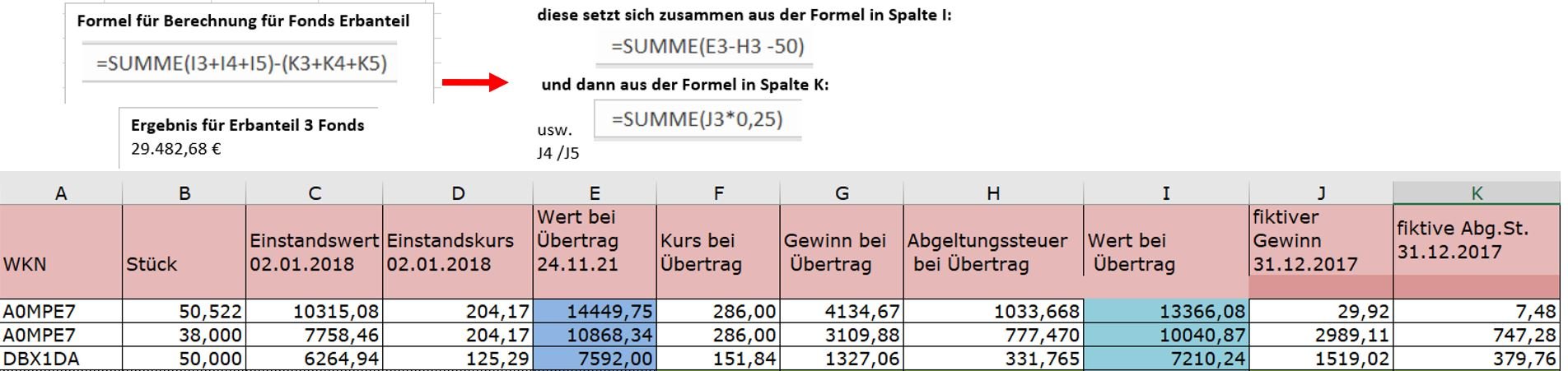 Jetzt kam von ihm eine Excelübersicht mit Berechnung der Fonds für die Bewertung des Erbanteils.