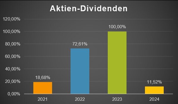Die Höhe der Dividendenerträge in 2024 hat damit 11,52% der Dividendenerträge des Vorjahres erreicht.