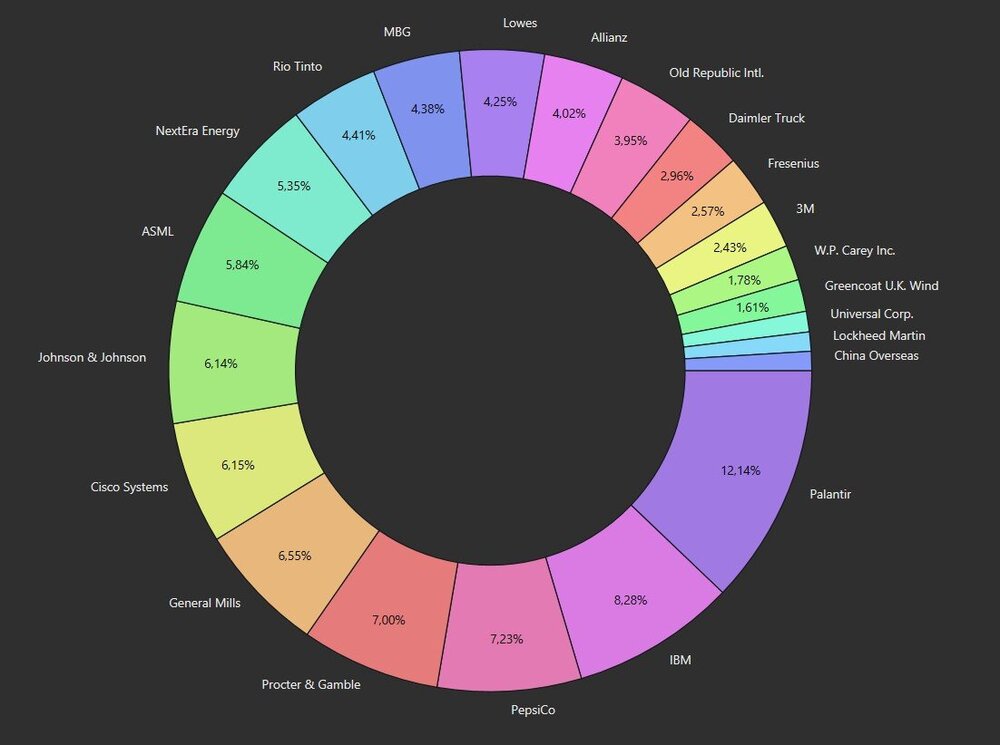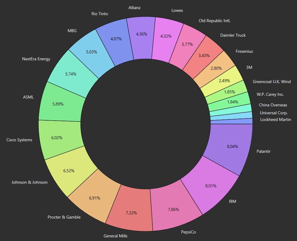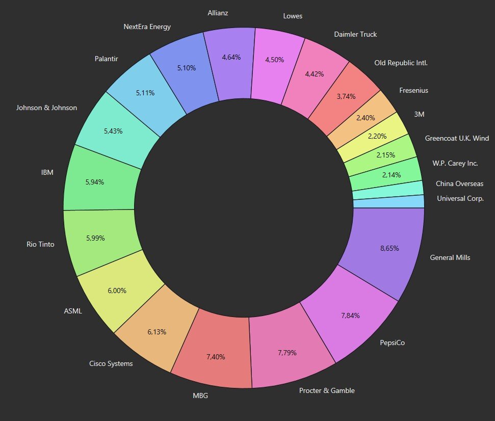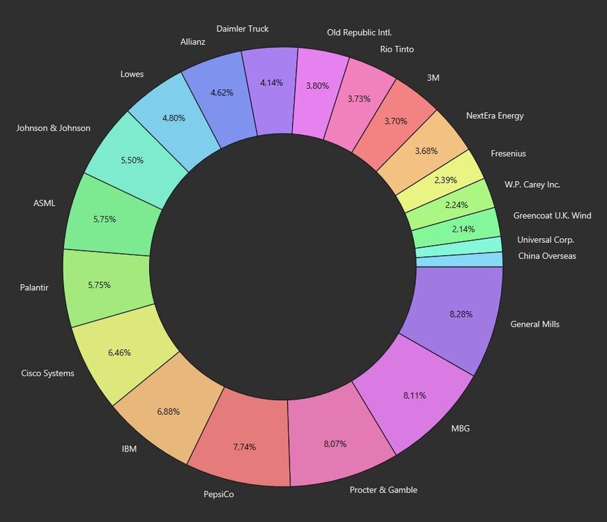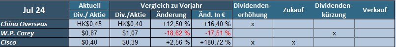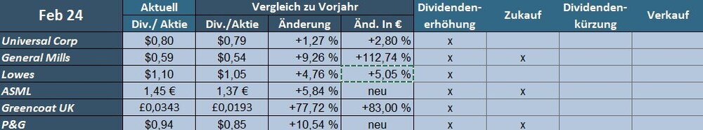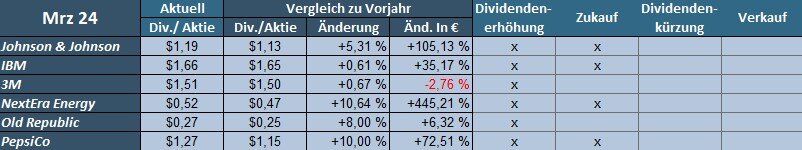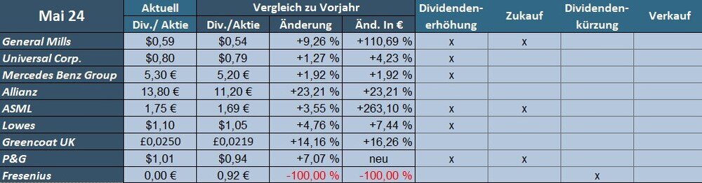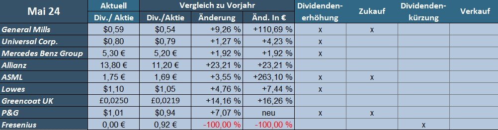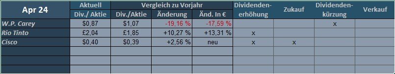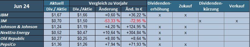 Die Gründe hierfür sind die Verschiebung der Dividendenzahlung von Daimler Truck (2023-Juni, 2024-Mai) und die Kürzung bei 3M.
