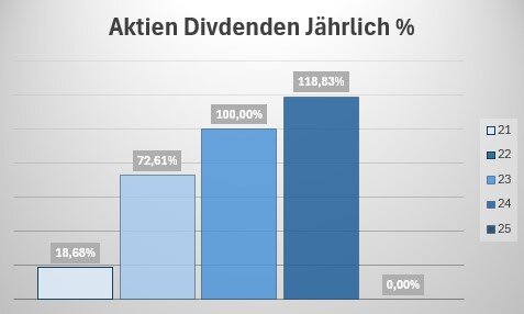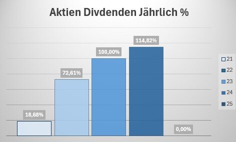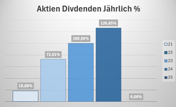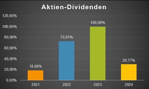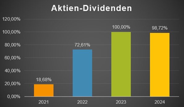 Die Höhe der Dividendenerträge in 2024 hat damit 126,65 % der Dividendenerträge des Vorjahres erreicht.