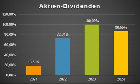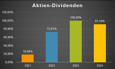 Die Höhe der Dividendenerträge in 2024 hat damit 118,8% der Dividendenerträge des Vorjahres erreicht.