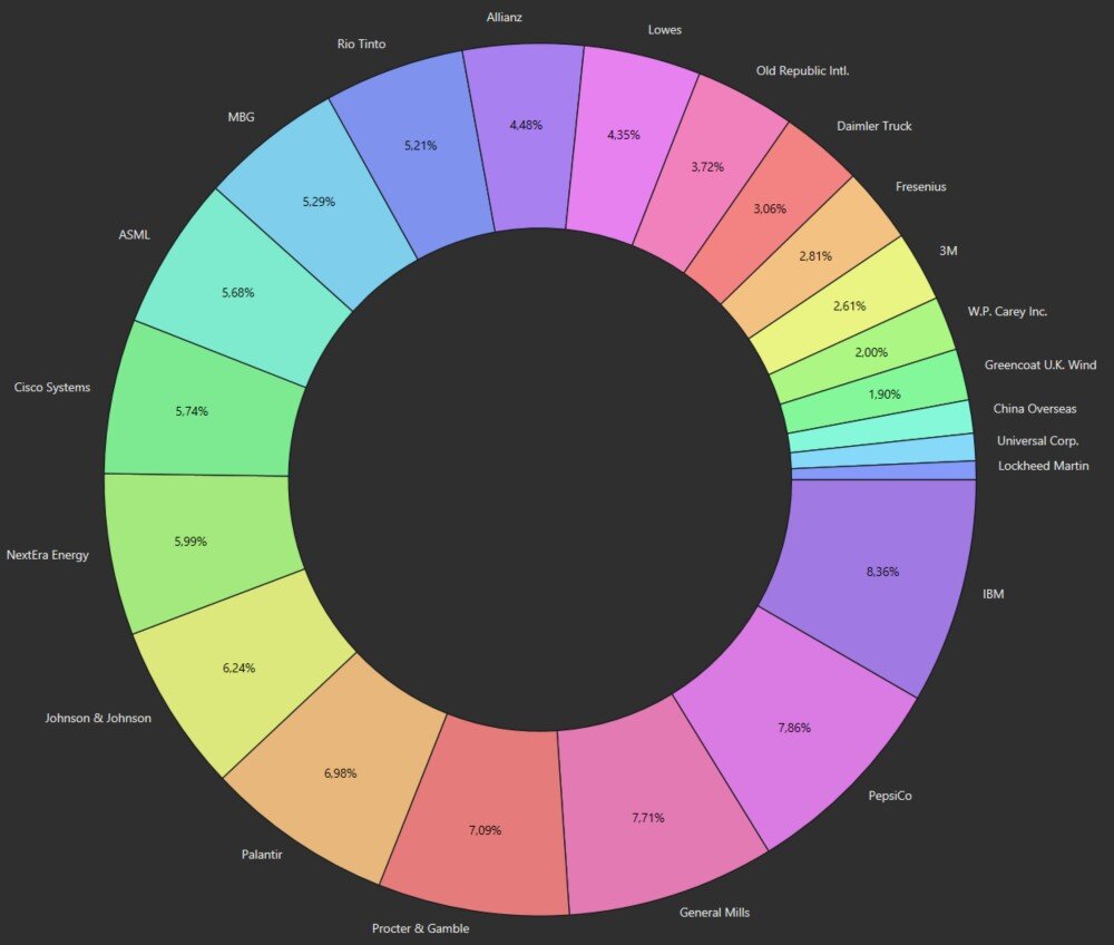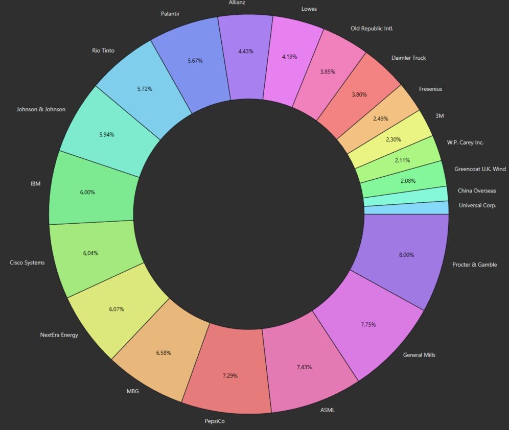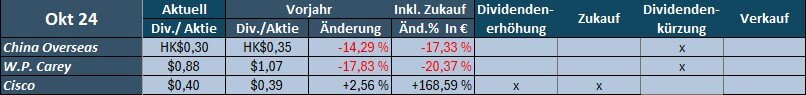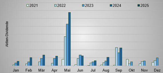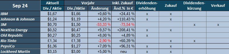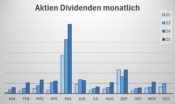 Die Dividendenerträge im September waren um 17,4% höher als im Vorjahr. (ca. -15% stammen von Dividendenerhöhungen, der Rest von Zukäufen).