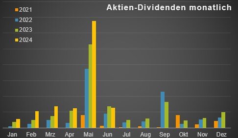 Damit ist der Juni der erste Monat in diesem Jahr mit niedrigerer Dividenzahlung verglichen mit 2023.