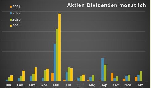Die Höhe der Dividendenerträge in 2024 hat damit 21,09% der Dividendenerträge des Vorjahres erreicht.