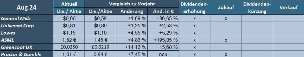 Die Dividendenerträge im September waren um 39,3% höher als im Vorjahr. (ca. -3,8% stammen von Dividendenerhöhungen, der Rest von Zukäufen).