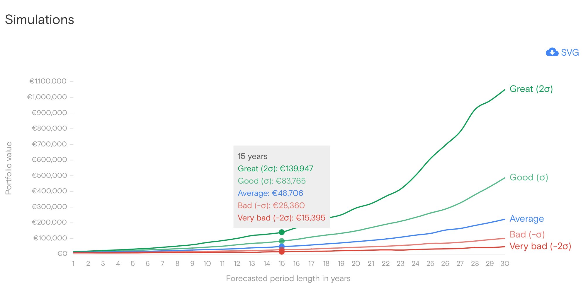 Gute Hinweise, was vielleicht fehlt sind Szenarien, was passiert, wenn nach 15 Jahren die Kurse unter den Einstandskursen liegen und wie hoch KÖNNTEN die Wahrscheinlichkeiten sein?
