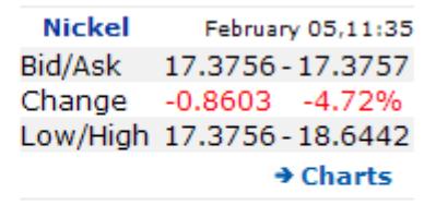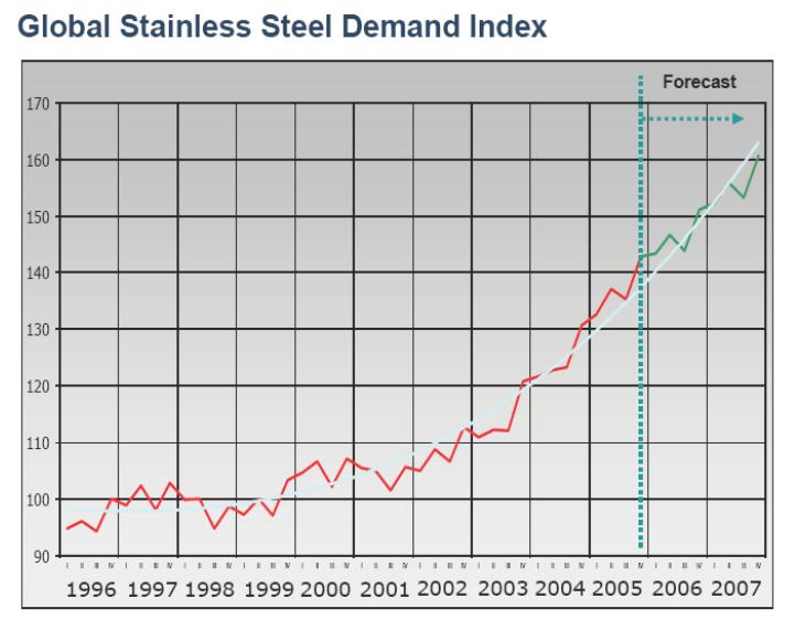 Die von der LME beobachteten Nickel-Lagerbestände sind laut dem täglichen Börsenbericht auf 6 120 Tonnen gesunken. In diesem Jahr schrumpften sie bereits um 83 Prozent. Das Angebot an Nickel wird 2006 voraussichtlich nicht mit der Nachfrage Schritt halten. Der weltweit zweitgrößte Nickelproduzent Inco prognostizierte im Juli eine Angebotslücke von 30 000 Tonnen. Angetrieben wird die starke Nachfrage von den Edelstahlherstellern.