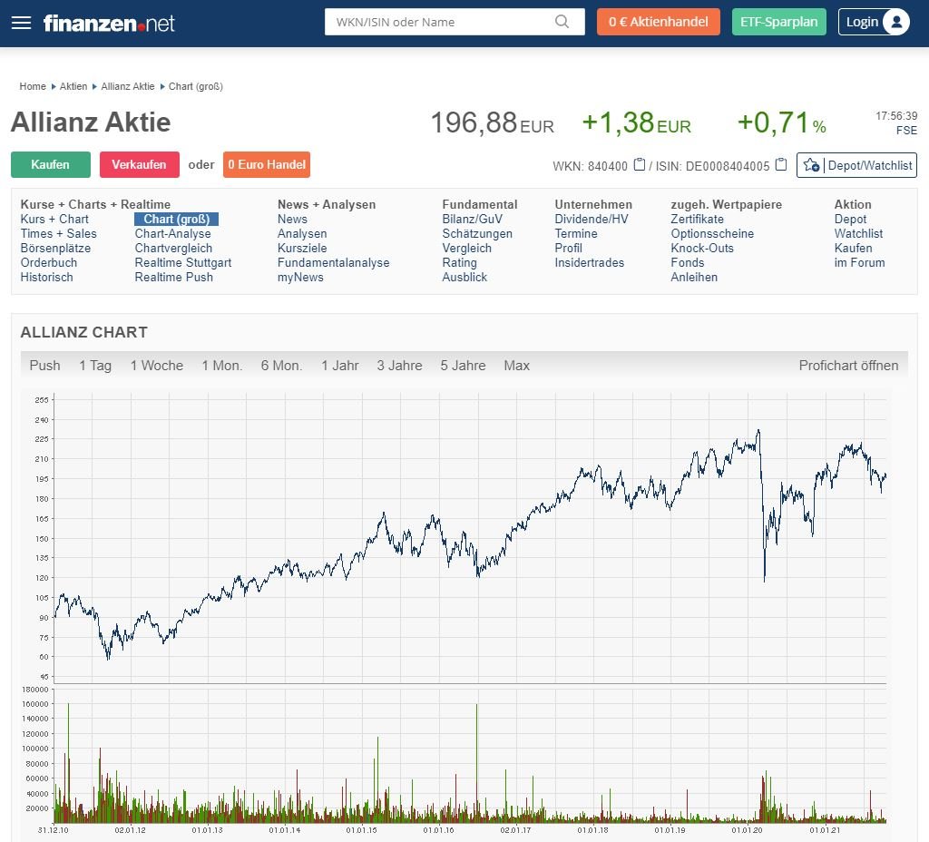 Den Fakt, dass die Makler-Firma damals eine ganze Arbeit geleistet hat, und viele meiner Kollegen die bAV abgeschlossen hatten, habe ich allerdings nicht als "leider" bewertet, sondern als "Wow, was für eine Leistung!" Daher habe ich ein paar Allianz-Aktien gekauft und sie haben sich bis heute im Durchschnitt ca. 20-24% p.a. entwickelt, incl. Dividenden.