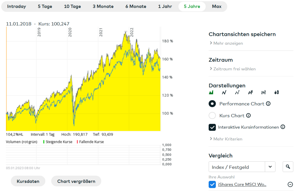monstermania Januar 9, 2023 vor 56 Minuten von Tom49: Ich interessiere mich vor allem für den von DWS (IE00BL25JP72) weil er eine niedrigere TD als der von iShares hat. Ich würde das nicht überwerten. https://www.fondsweb.com/de/vergleichen/ansicht/isins/IE00BL25JP72,IE00BP3QZ825 Über die Jahre gesehen liegt mal der DWS und mal der iShares vorne. Insbesondere bei einer Sparplaninvestition verschwimmen die Unterschiede doch zusehends. Diesen Beitrag teilen Link zum Beitrag