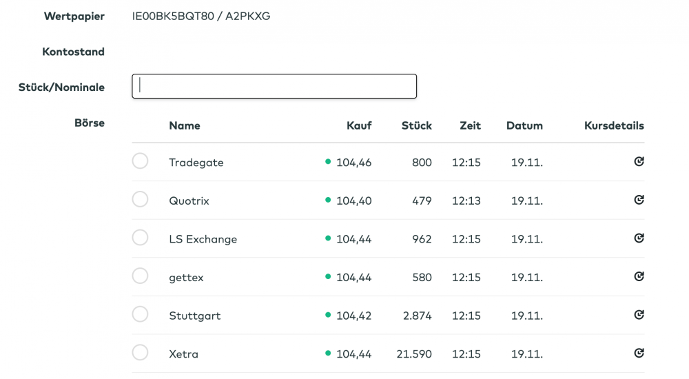 Und ich sehe was an den Handelsplätzen für Preise und Volumen gestellt werden.