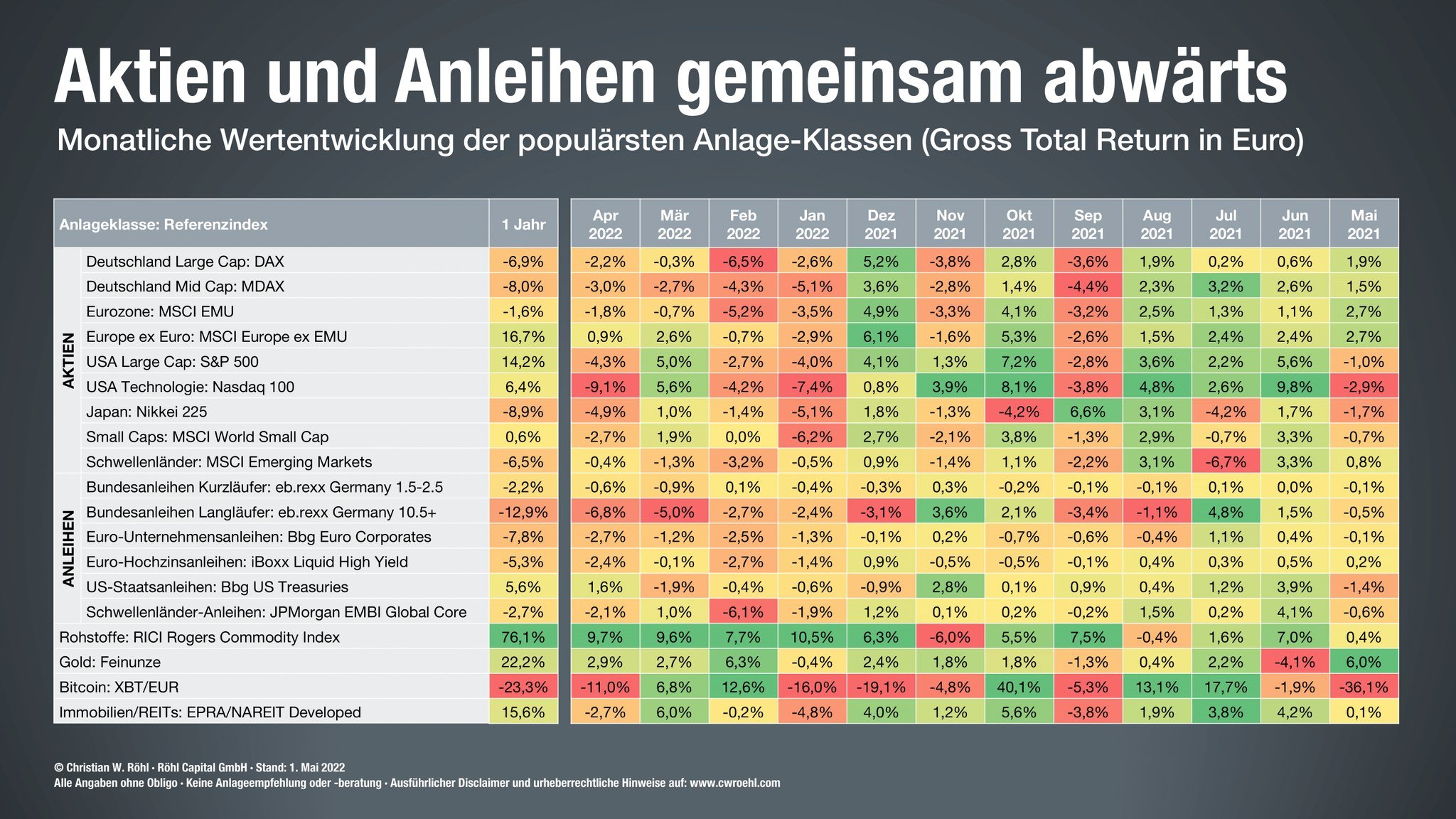 herbert_21 Mai 11, 2022 · bearbeitet Mai 11, 2022 von herbert_21 Antwort: erste Seite Keine Tesla Aktien, wiedereinstieg möglich, habe allerdings über 50k im Nasdaq (AAPL, MSFT, GOOG), was schon recht mutig ist. Eine AMD und Tesla sind mir im aktuellen Umfeld zu volatil, und der Fokus liegt 2022 auf 1) Kapitalerhalt 2) Dividendenwachstum, was eine Änderung der Strategie ist. Apropos 1) Hier ist das Mindset des Schnäppchenjägers gut karikiert (Mark Minervini zur Robin Hood Aktie ) Mein ARKK habe ich 2021 verkauft. Risikomanagement. In diesem Umfeld. Einfach mal schauen, wie weit meine Positionen im Minus sind. Manche Fragen sollten sich damit beantworten lassen ... Diesen Beitrag teilen Link zum Beitrag