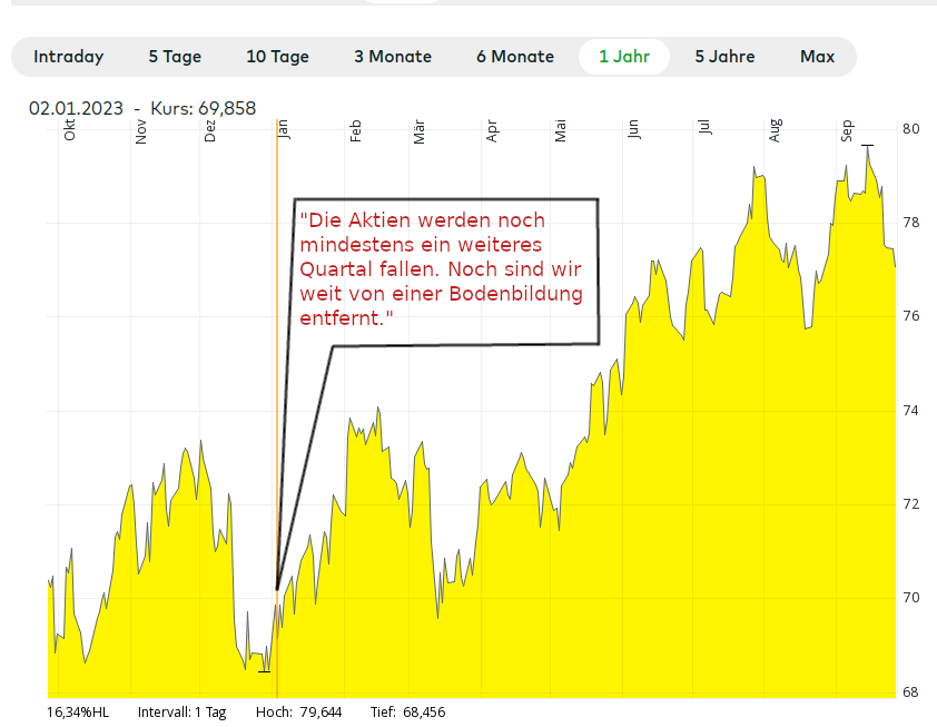 finisher September 26, 2023 Am 2.1.2023 um 19:36 von Michalski: Die Aktien werden noch mindestens ein weiteres Quartal fallen. Noch sind wir weit von einer Bodenbildung entfernt. Der Vollständigkeit halber: Link zum Chart Diesen Beitrag teilen Link zum Beitrag