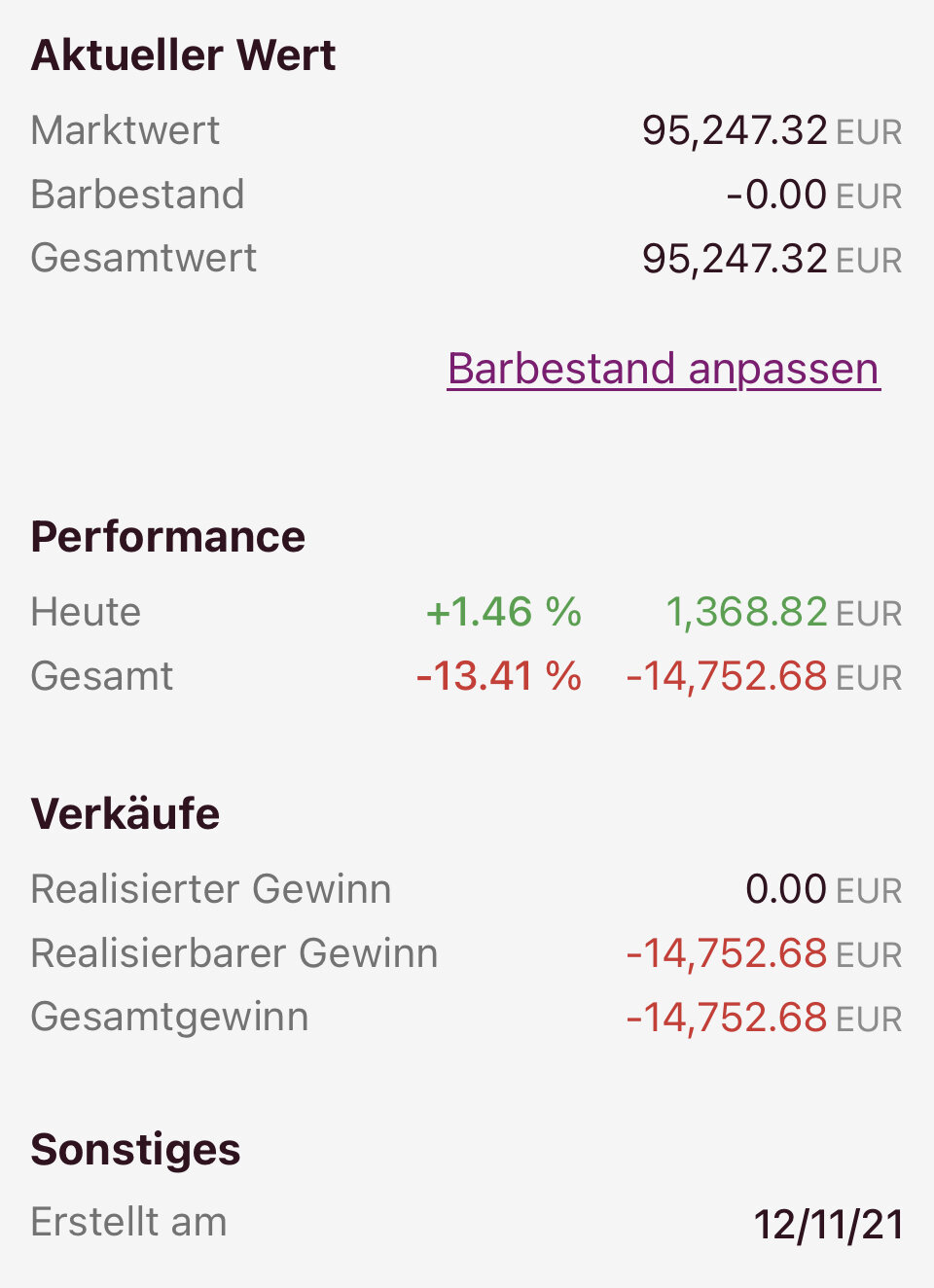 Peter Grimes November 2, 2022 · bearbeitet November 2, 2022 von Peter Grimes Stand Ende Oktober (Anfang November): -10% 01. Diamantenhände -8,83% 02. CorMaguire - 9,54% 03. Peter Grimes -10,0% 04. Luftschloss -10,36% 05. Lever-H -13,49 06. Ghost_69 -14,09 % 07. LVNA -16,31 % 08. Ich lerne dazu -16,61 % 09. bohi -16,82 % Diesen Beitrag teilen Link zum Beitrag