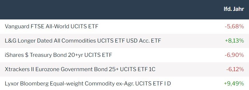 chirlu Februar 11, 2022 · bearbeitet Februar 11, 2022 von Madame_Q vor 1 Stunde von rentier: Am 9.2.2022 um 20:35 von Madame_Q: oder alles nehmen nach dem Motto "irgendeine andere Assetklasse wird schon funktionieren"? ARERO: Wertentwicklung laufendes Jahr: -0,68% (am 10.02.2022) Ja, da sind es (dieses Mal) die Rohstoffe, wie oben schon festgestellt wurde: Am 9.2.2022 um 20:35 von Madame_Q: Was dagegen den Rückgang von Aktien und Anleihen in den letzten Wochen gut abgefangen hätte, wären Rohstoff-Futures gewesen Diesen Beitrag teilen Link zum Beitrag