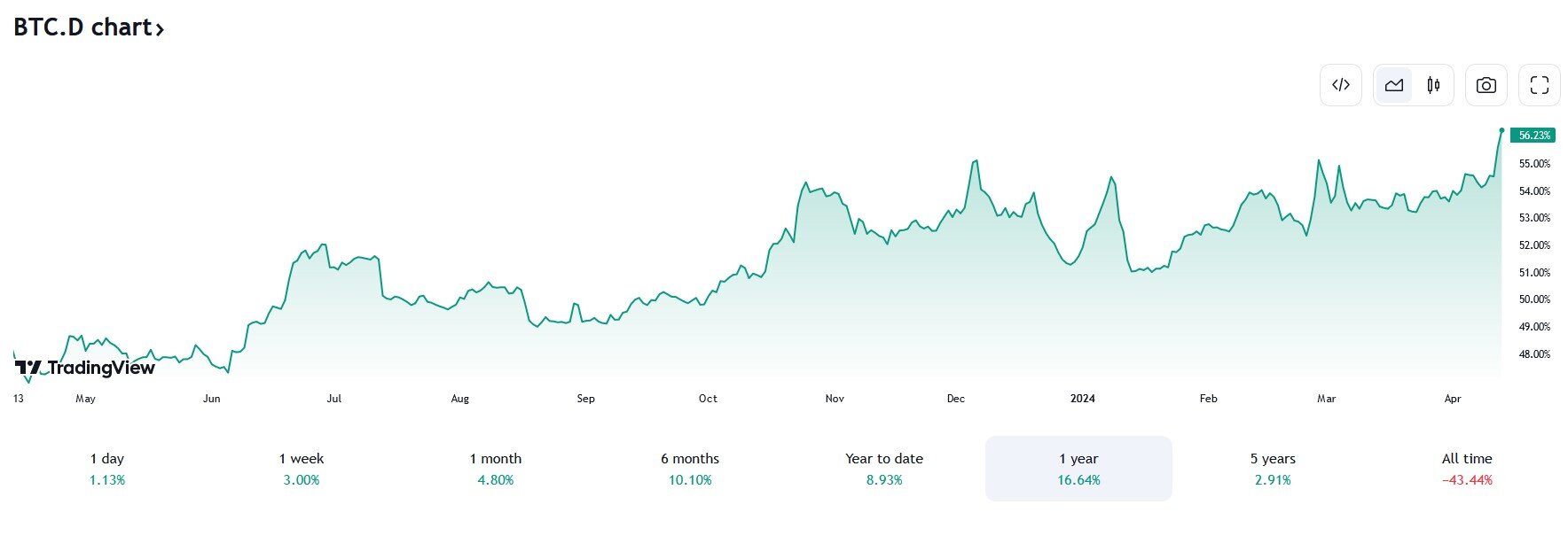 WalleWalle April 13, 2024 Bitcoin stolpert -> Altcoins stürzen -> Bitcoin Dominanz (Marktanteil) steigt auf +56%, neuer Höchstwert im lfd. Jahr https://www.tradingview.com/symbols/BTC.D/ Diesen Beitrag teilen Link zum Beitrag